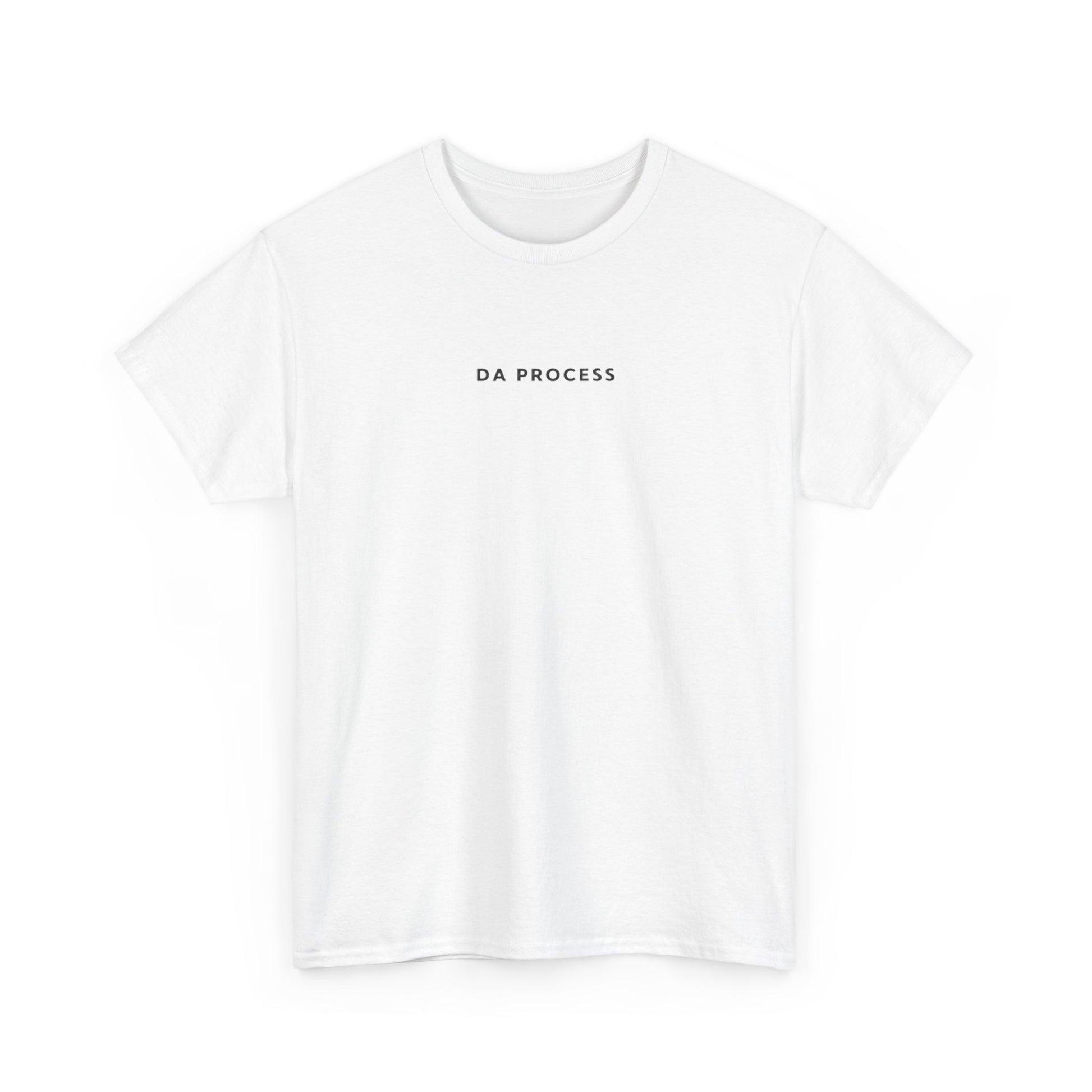 A clean, understated tee that speaks softly but confidently. Lightweight yet durable 100% cotton holds a neat silhouette while the minimalist front text lets your intentions show without shouting. Wear it on slow mornings with coffee and a notebook, on quick errands when you need something reliable, or layered under a jacket for a low-key, thoughtful look. The smooth fabric and tear-away label make it comfortable all day; the subtle printed detail sits close to the heart — a quiet reminder to keep moving through the process.